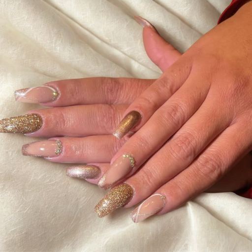 De nagels worden eerst versterkt met een acrylbasis en daarna met de hand versierd voor een perfect afgewerkt resultaat. Elk ontwerp is maatwerk en wordt afgestemd op jouw wensen, of je nu kiest voor klassiek, speels of creatief.